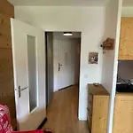 L'angolo cottura attrezzato comprende un microonde, un bollitore elettrico e un frigo, oltre a servizi per la preparazione di tè/caffè per il massimo comfort degli ospiti. Quest'appartamento è proprio accanto alla stazione degli autobus Super Venosc.